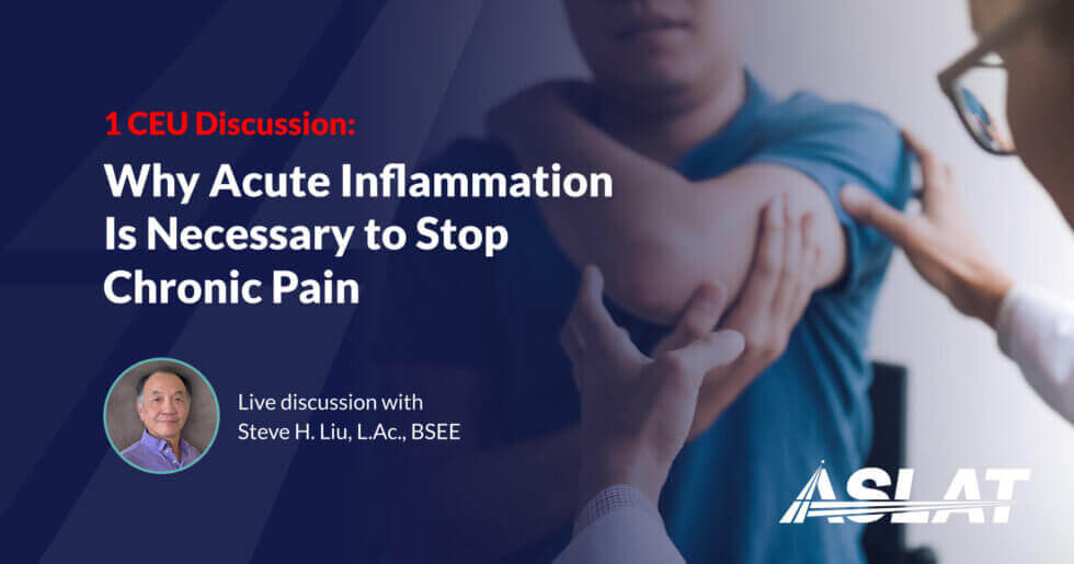 Join Steve H. Liu, L.Ac., BSEE for a discussion of a groundbreaking McGill University research paper challenging conventional pain treatment. He will review why acute inflammation is essential for resolving pain, how suppressing it with common anti inflammatories can promote chronic pain, and what this means for long term healing in practice.